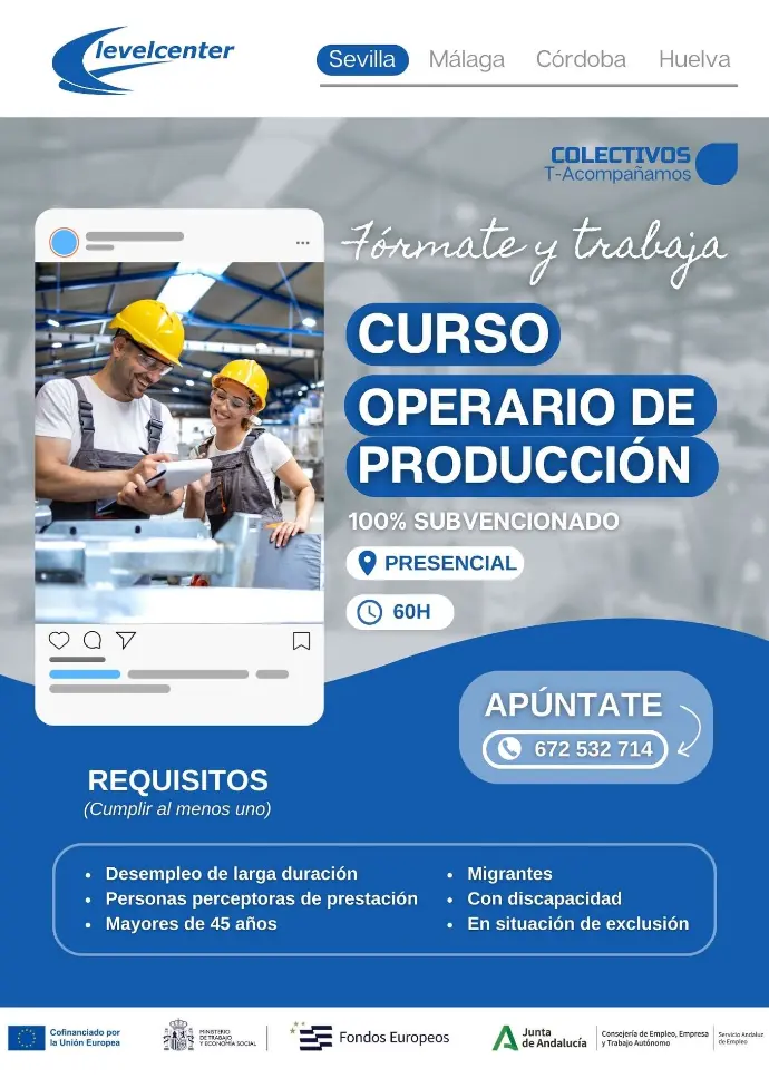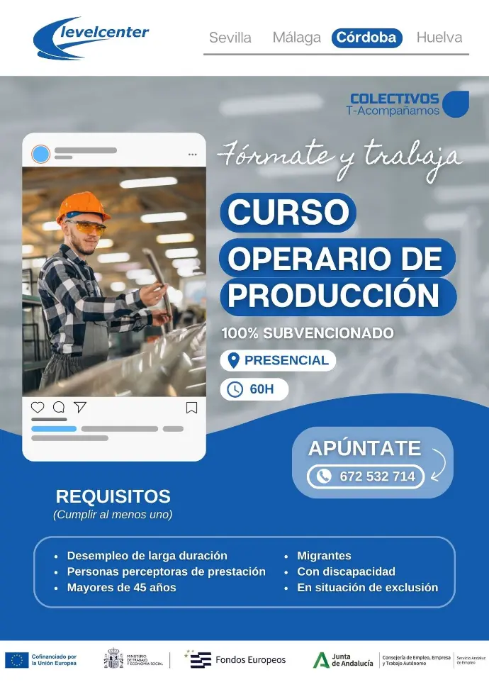 Este curso capacita al alumnado para desempeñar funciones básicas como operario/a en líneas de producción industrial y alimentaria, desarrollando competencias en manipulación de productos, control de calidad, organización del trabajo y prevención de riesgos laborales.